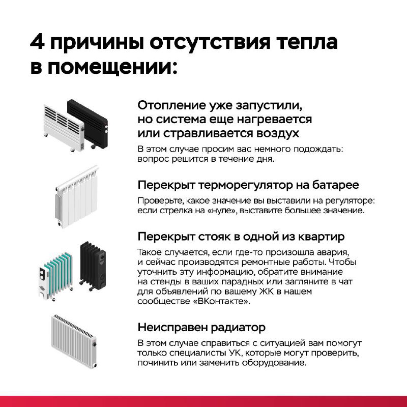 Отопление дали, а в квартире все еще холодно? Обратите внимание на состояние батарей. Четыре самых распространенных причины отсутствия тепла — на картинке!